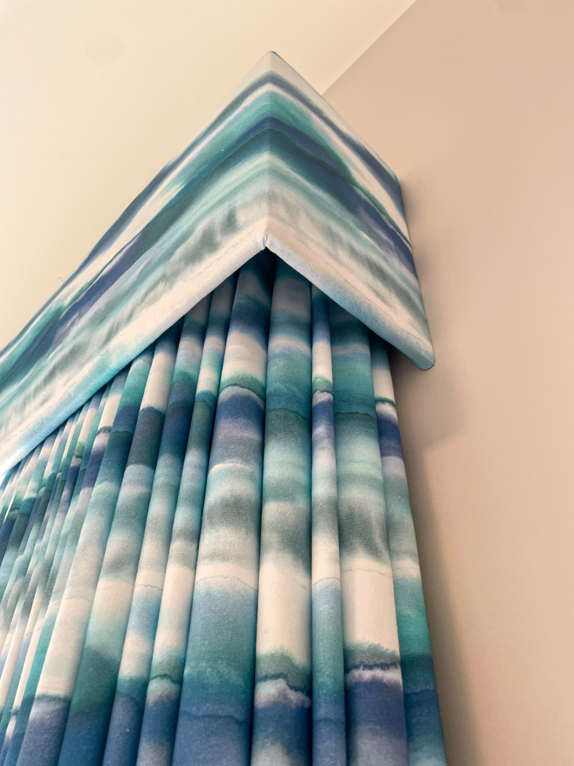 At Interior Inspirations, we specialise in bespoke bay and shaped pelmets. As we make all our wooden pelmets in our workshop here in Cornhill, this means we can do any size, shape or style.